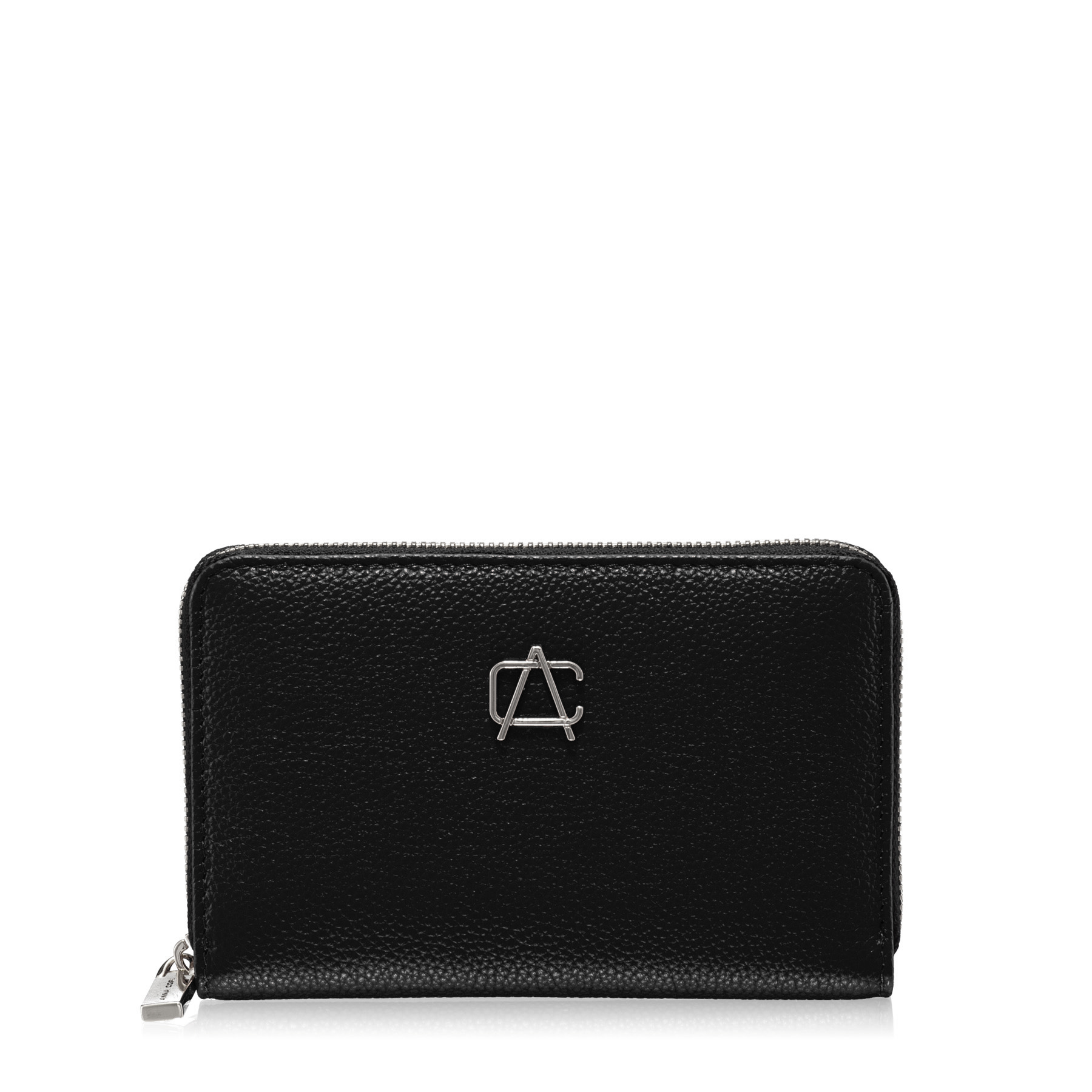 Portofel dama din piele naturala, personalizat cu monograma ANNA CORI. Este prevazut cu 3 compartimente, un buzunar cu fermoar pentru monede si 8 spatii pentru carduri.