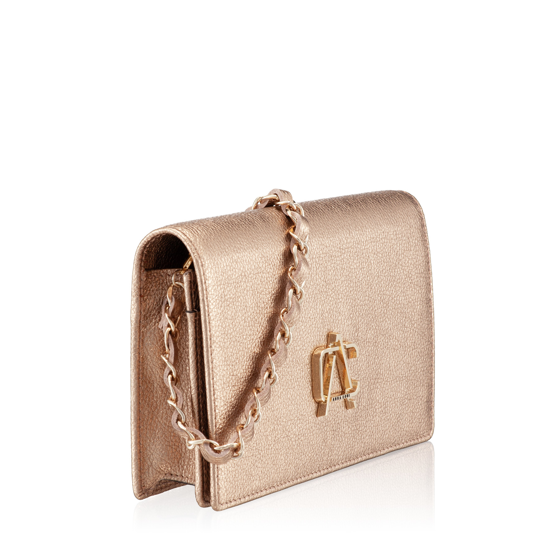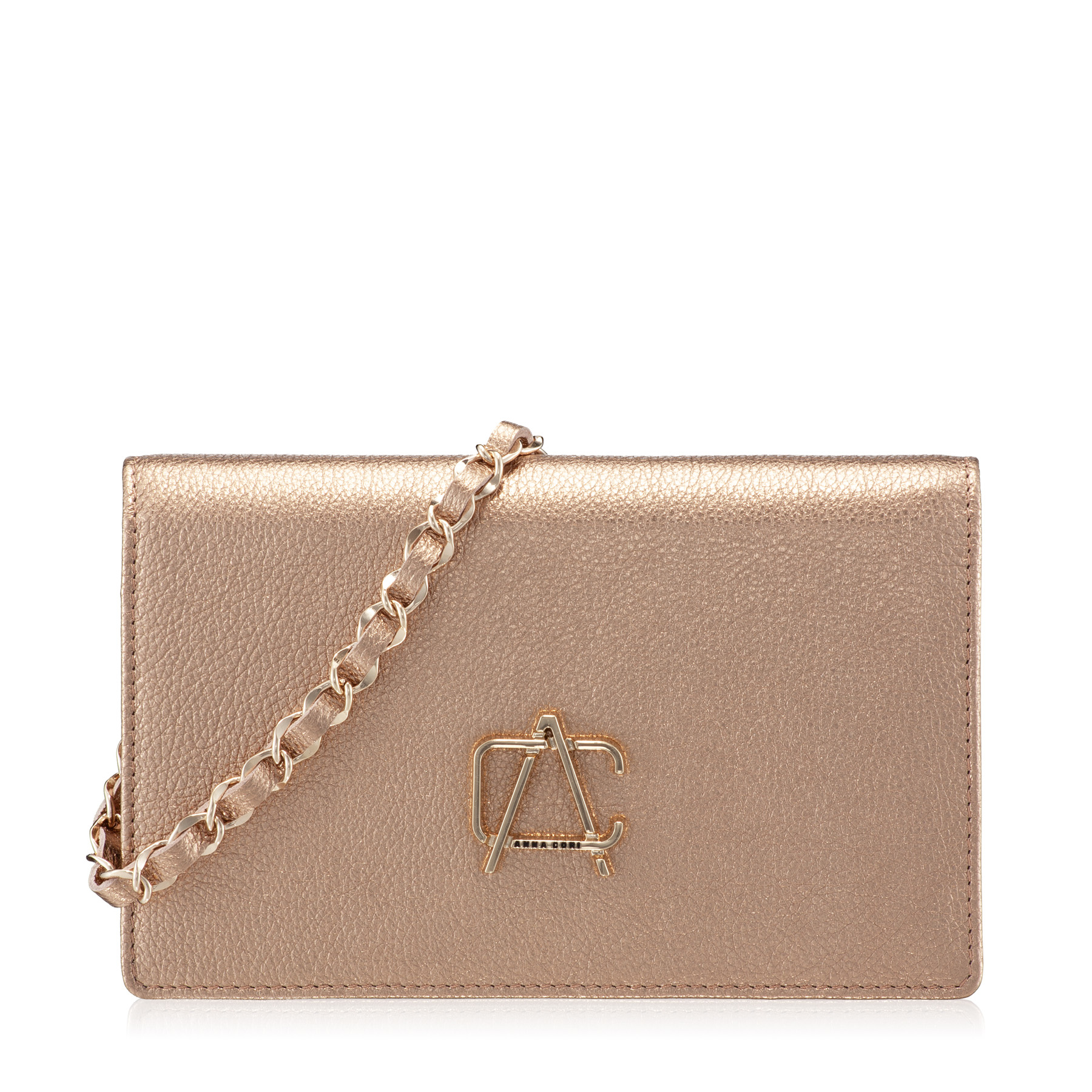 Geanta plic #ARNA este un model Icon Anna Cori datorită eleganței de care dă dovadă și diversității nuanțelor în care se regăsește. Este compartimentată într-un mod complex, având două compartimente, un buzunar central cu fermoar și 6 spații pentru depozitare carduri. Monograma Anna Cori din metal auriu adaugă un plus de eleganță.