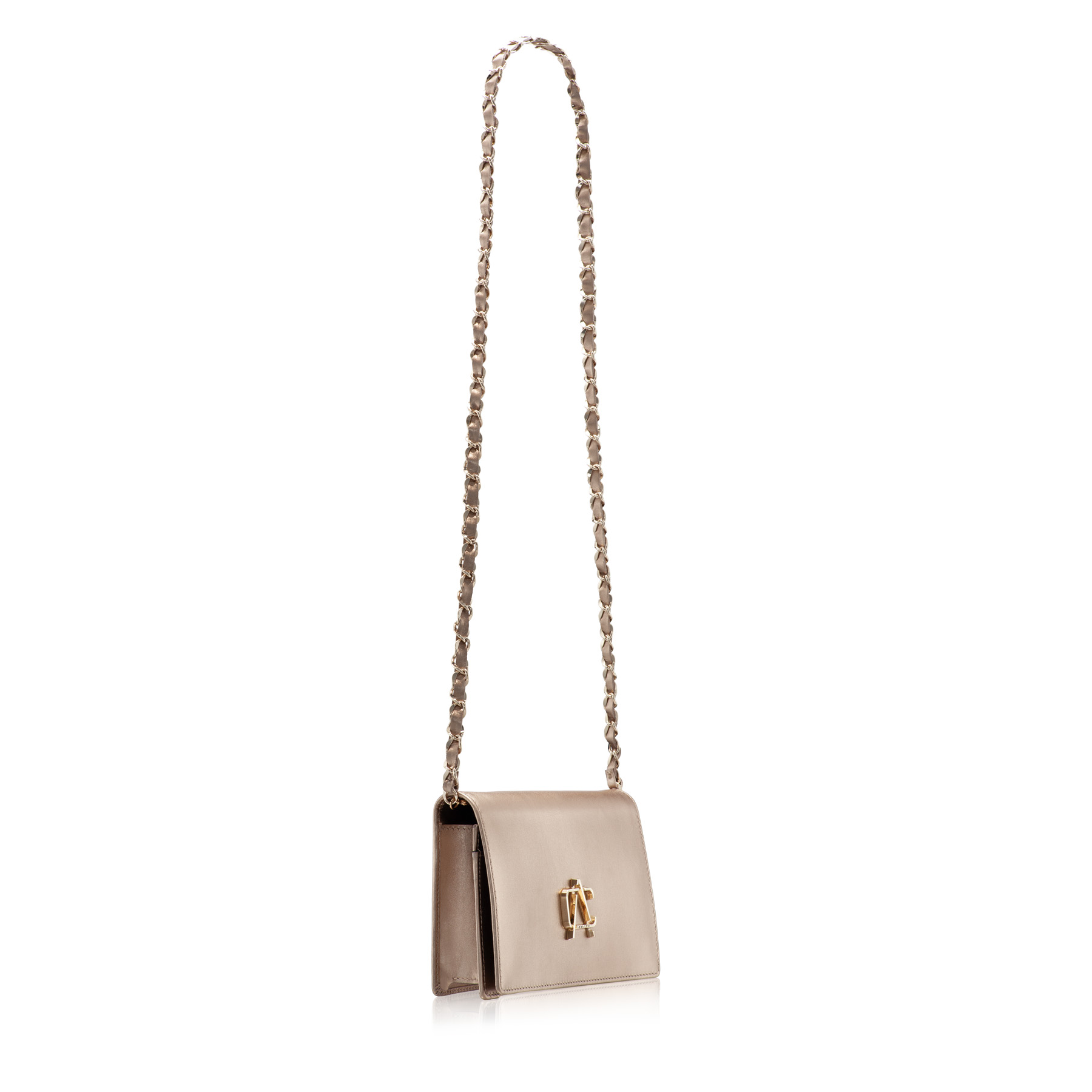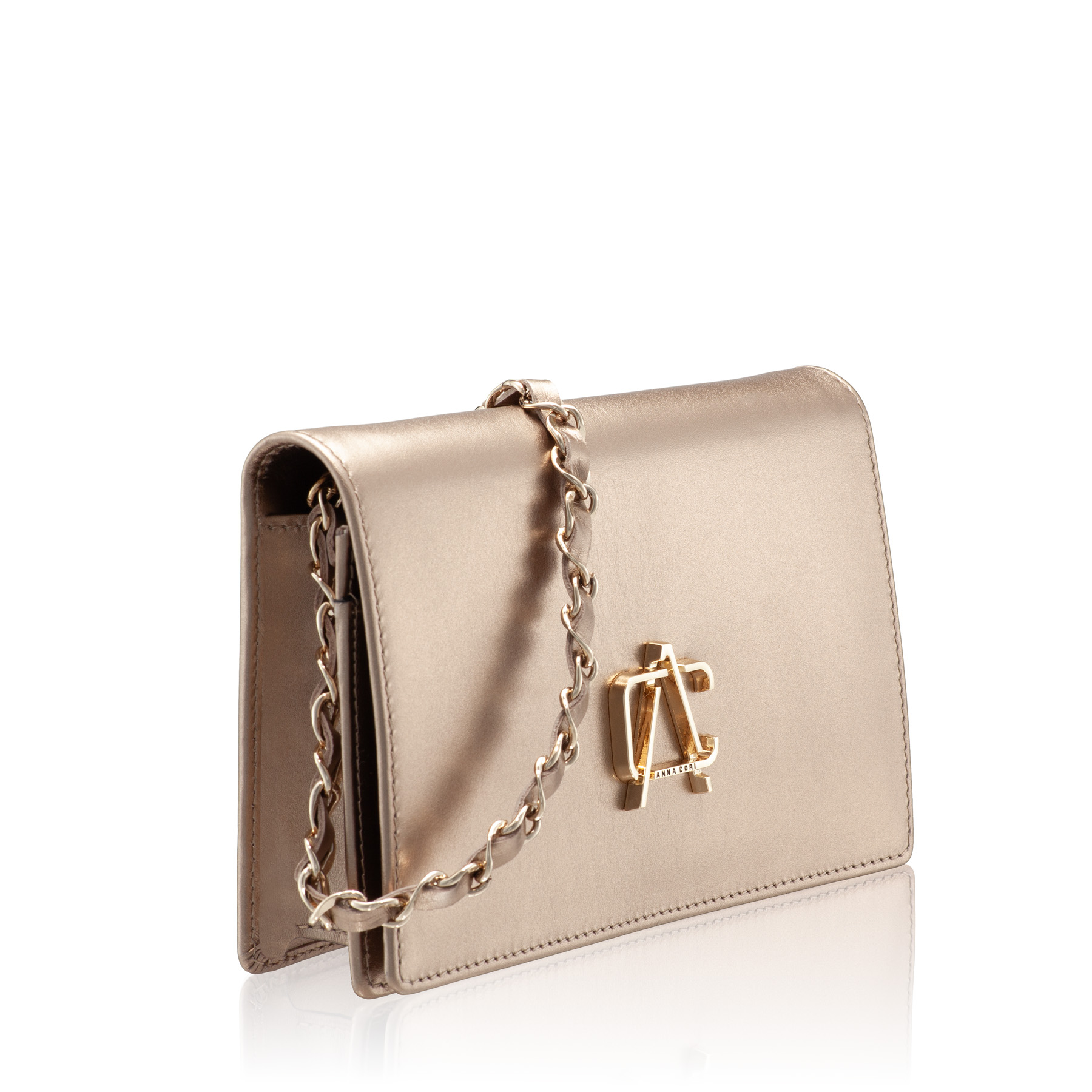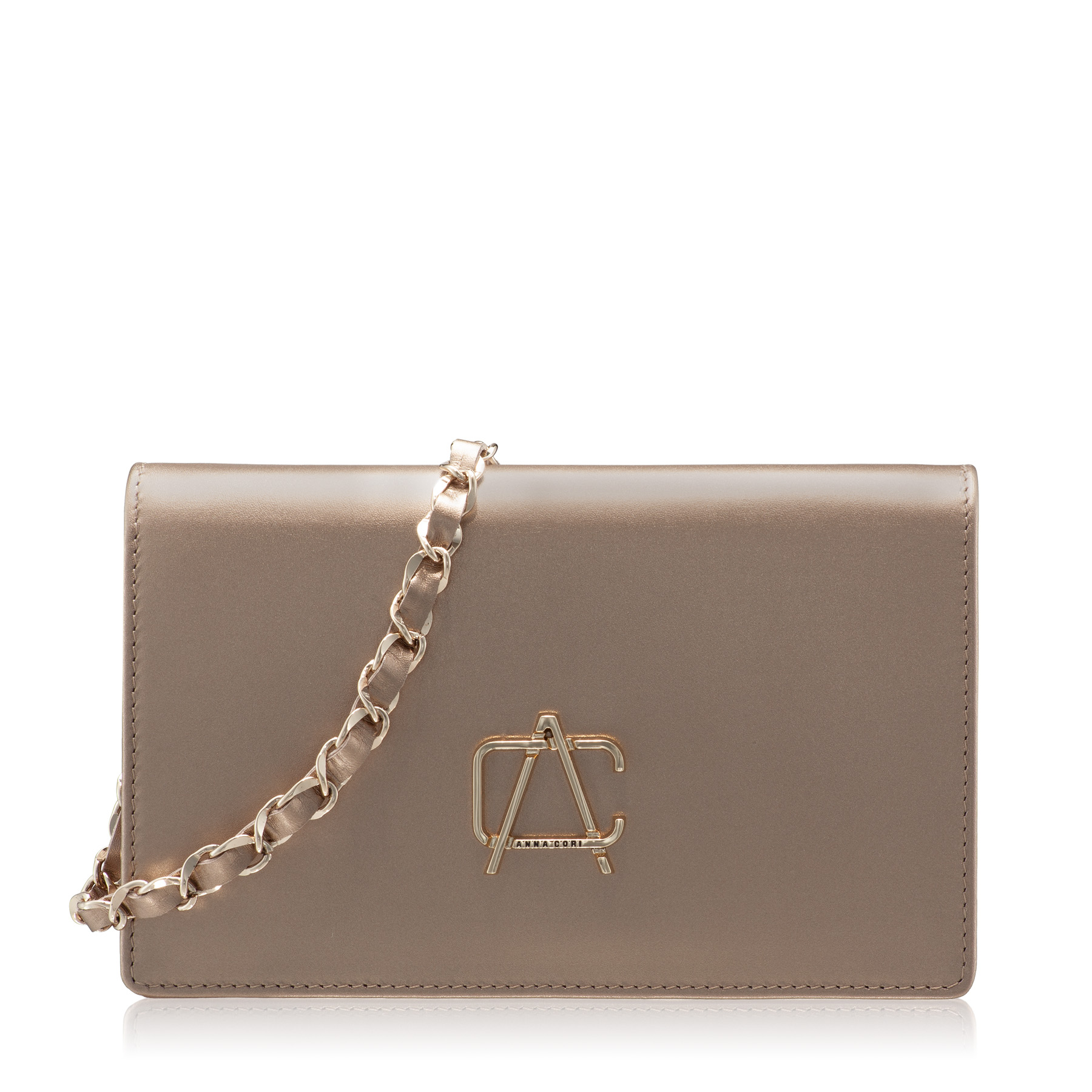 Geanta plic #ARNA este un model Icon Anna Cori datorită eleganței de care dă dovadă și diversității nuanțelor în care se regăsește. Este compartimentată într-un mod complex, având două compartimente, un buzunar central cu fermoar și 6 spații pentru depozitare carduri. Monograma Anna Cori din metal auriu adaugă un plus de eleganță.