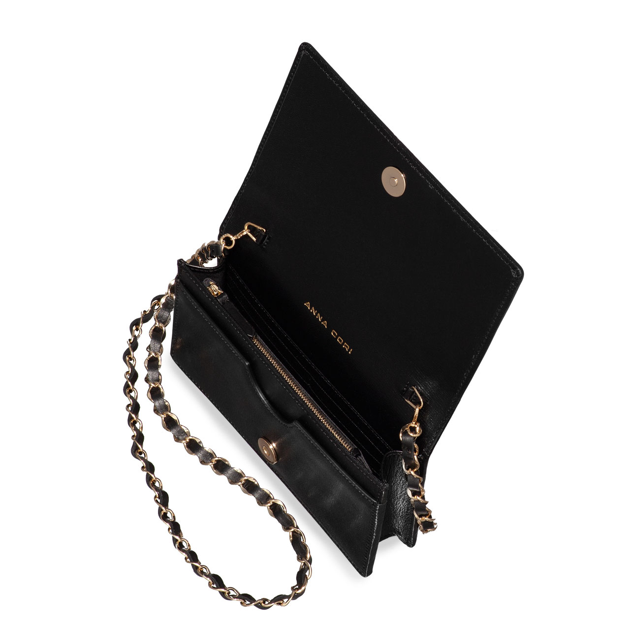 Geanta plic ARNA este un model Icon Anna Cori datorită eleganței de care dă dovadă și diversității nuanțelor în care se regăsește. Este compartimentată într-un mod complex, având două compartimente, un buzunar central cu fermoar și 6 spații pentru depozitare carduri. Monograma Anna Cori din metal auriu reușește să adauge un plus de eleganță.