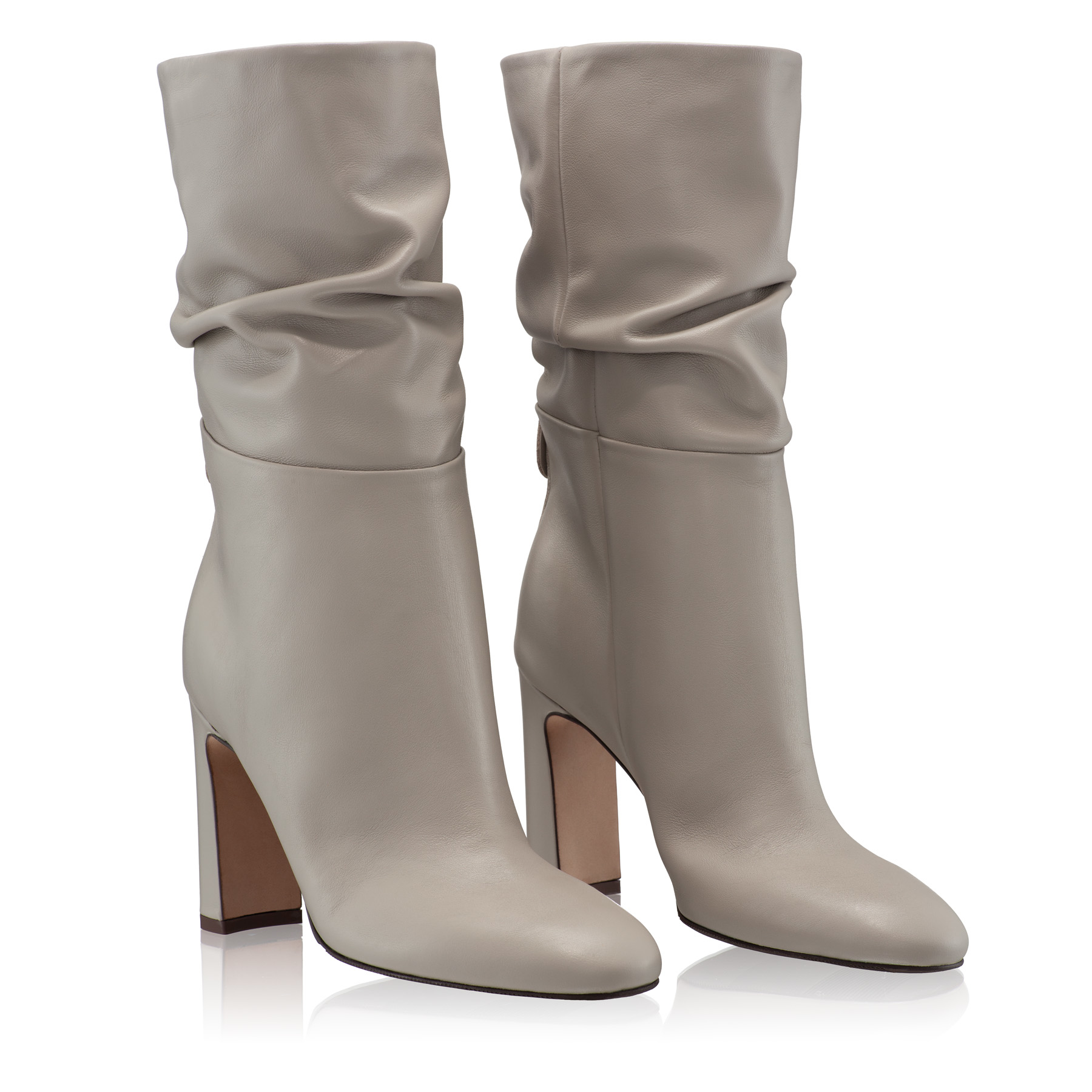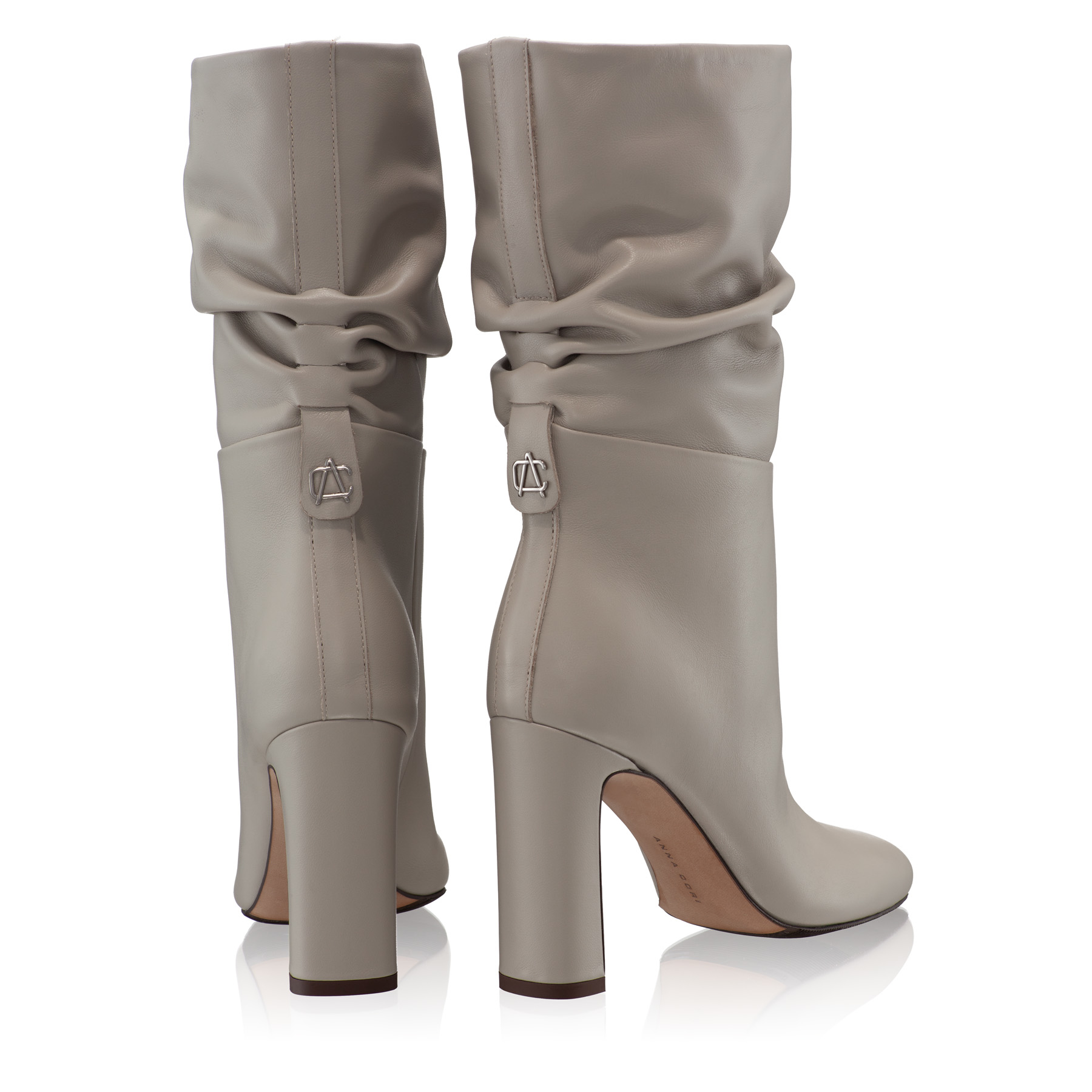 Cizme dama din piele naturală, accesorizate cu monograma Anna Cori.Înălțimea tocului este de 95 mm.În interior sunt căptușite cu piele naturală.