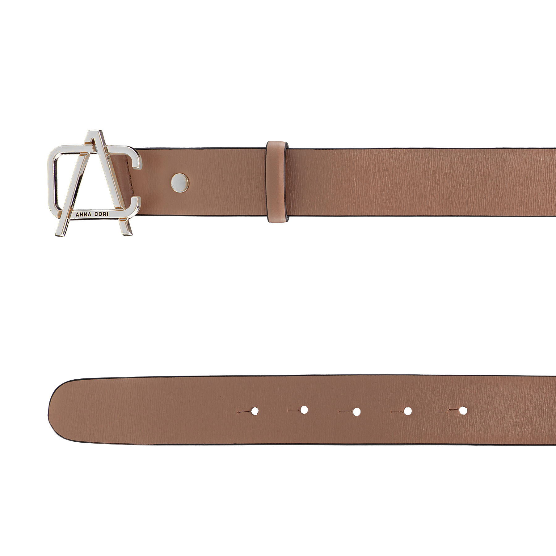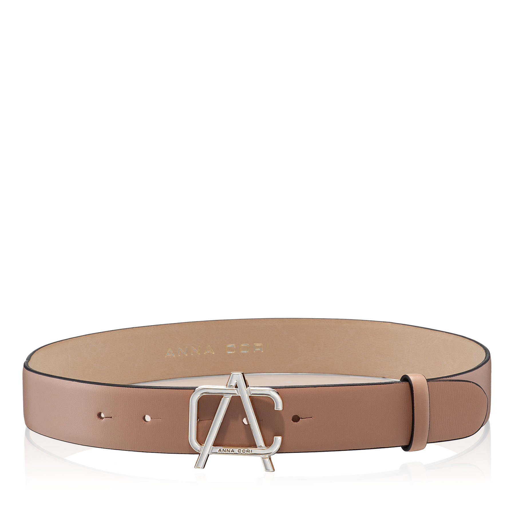 Curea dama din piele naturala accesorizata cu monograma Anna Cori.Latimea curelei este de 3,3cm.Accesoriile sunt argintii.