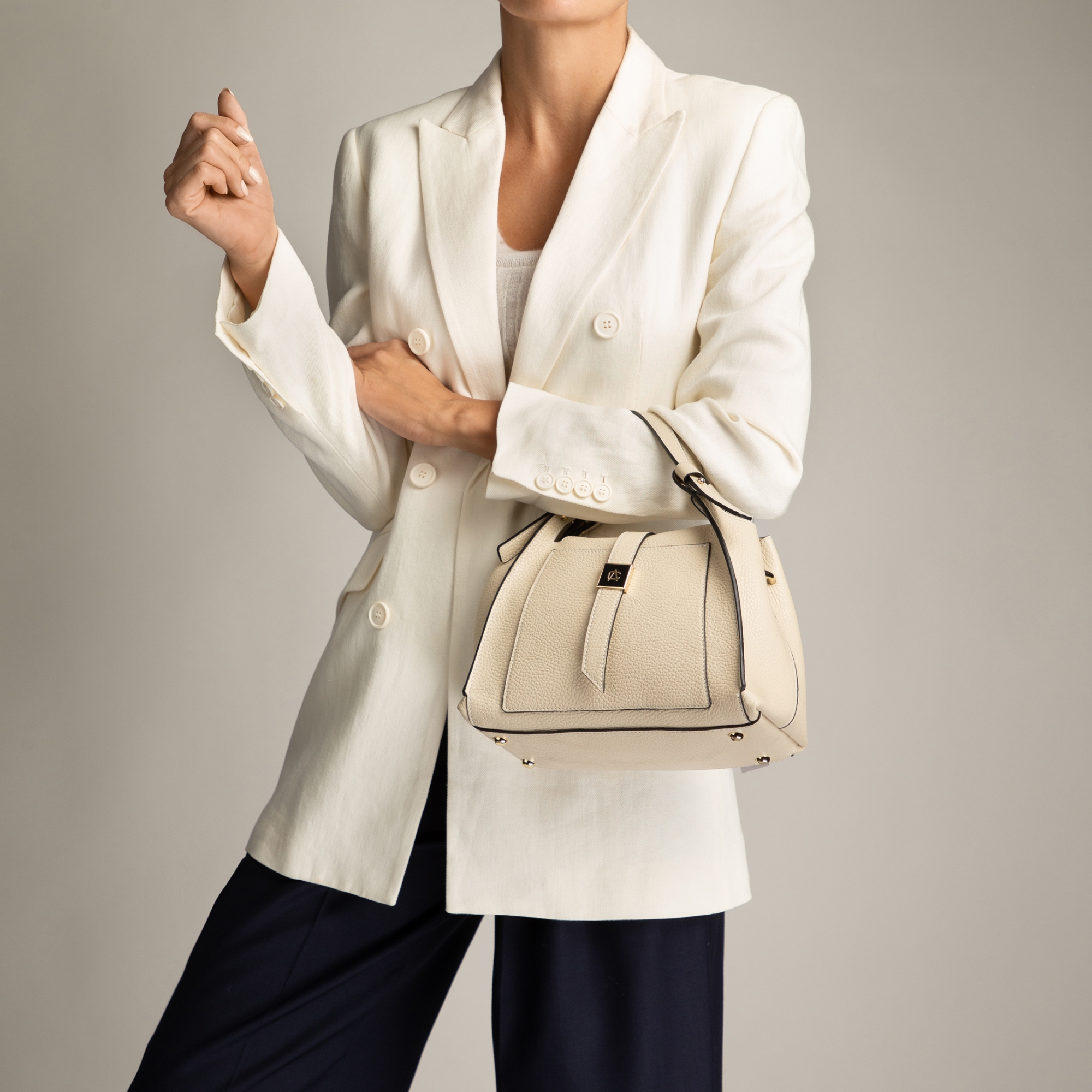 Geanta de mana dama din piele naturala BLUMA 01 BOTTALATO cu maner dublu - perfecta pentru tinute de birou, intalniri sau iesiri in oras.