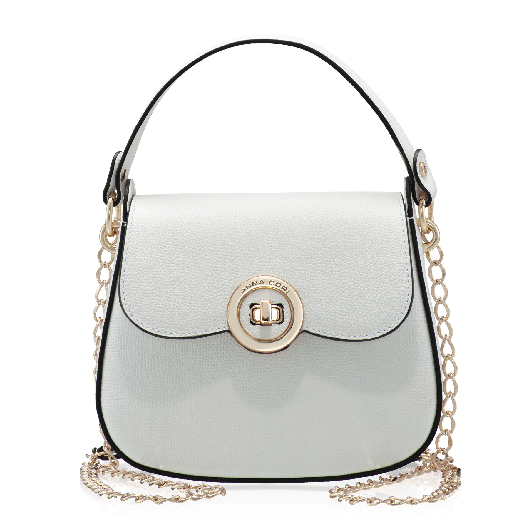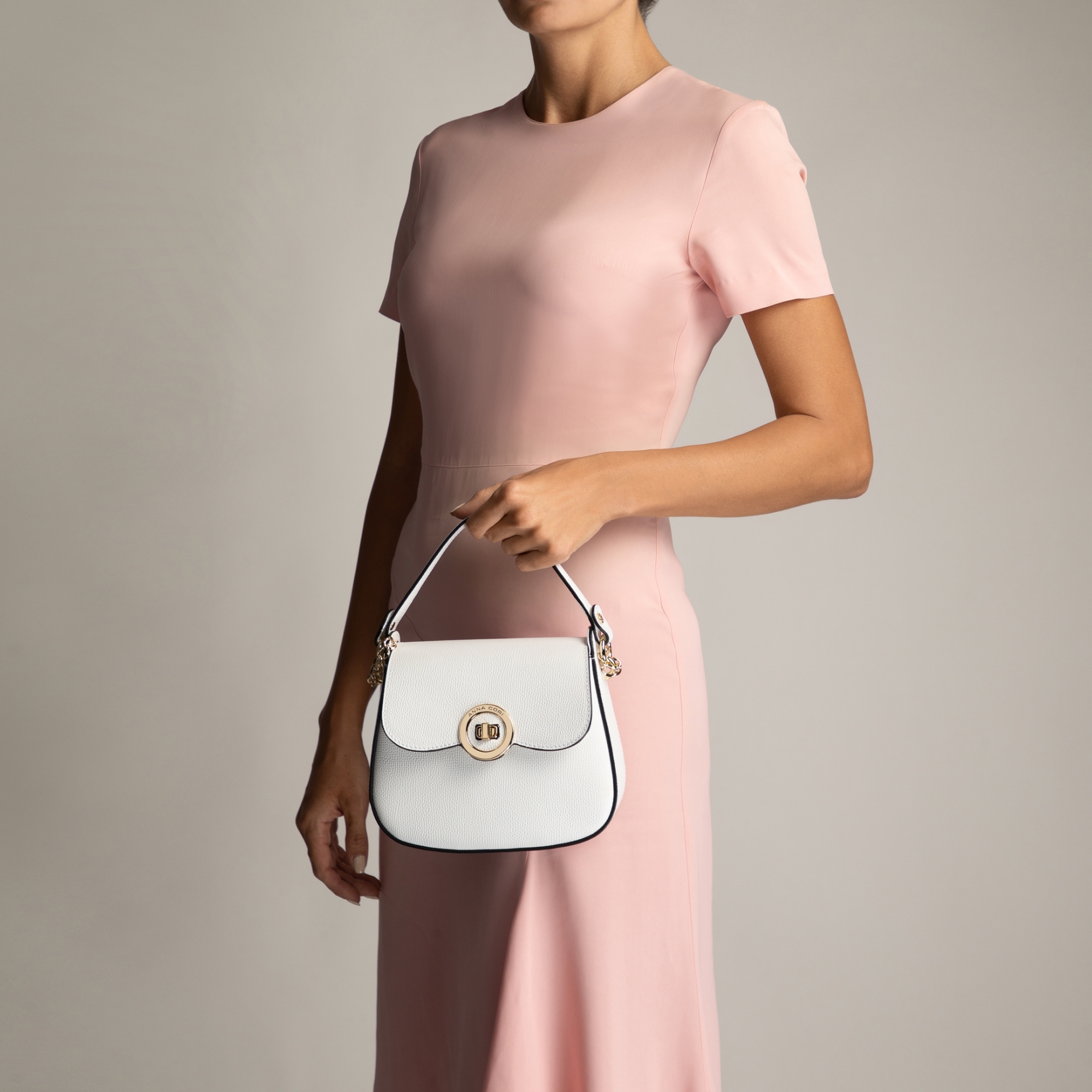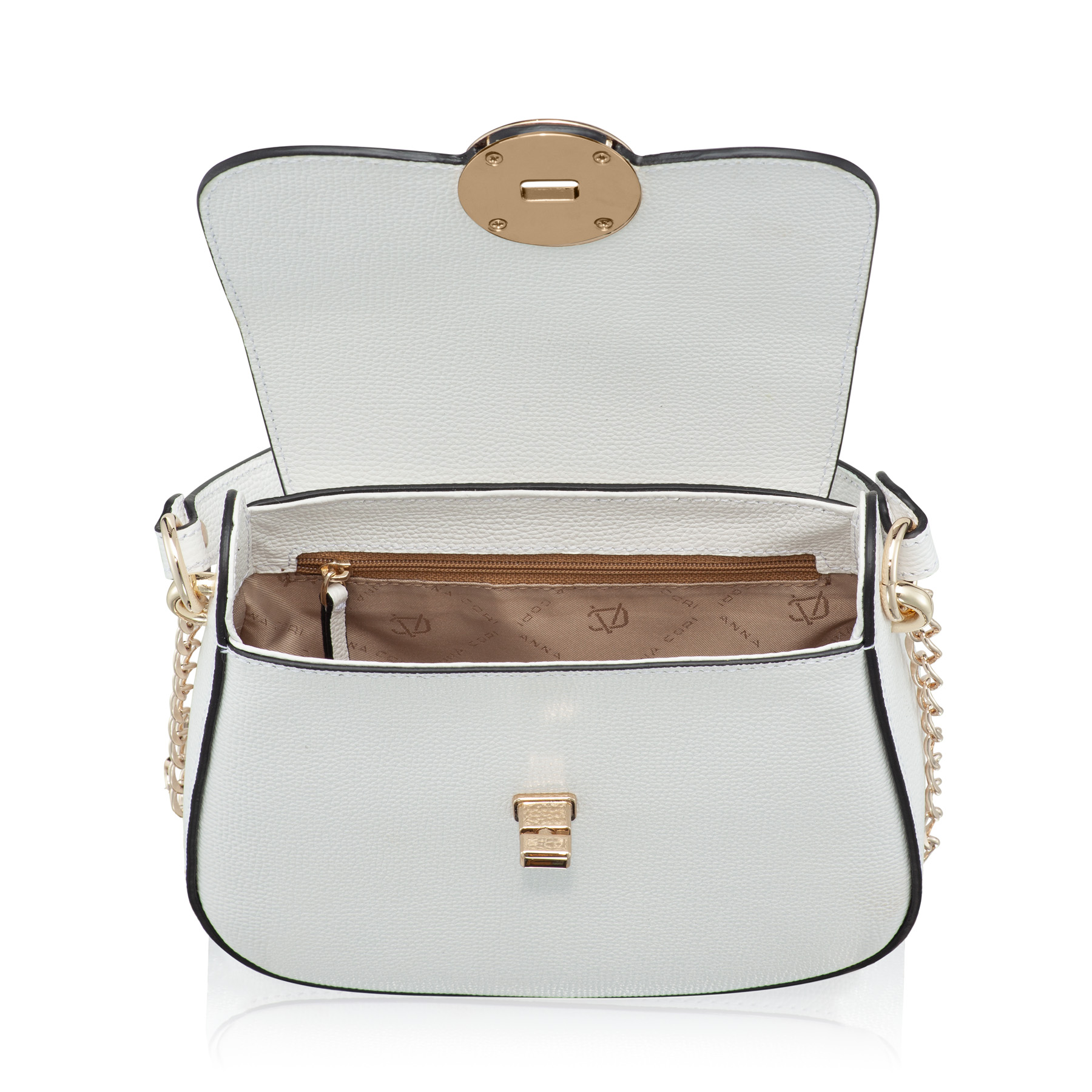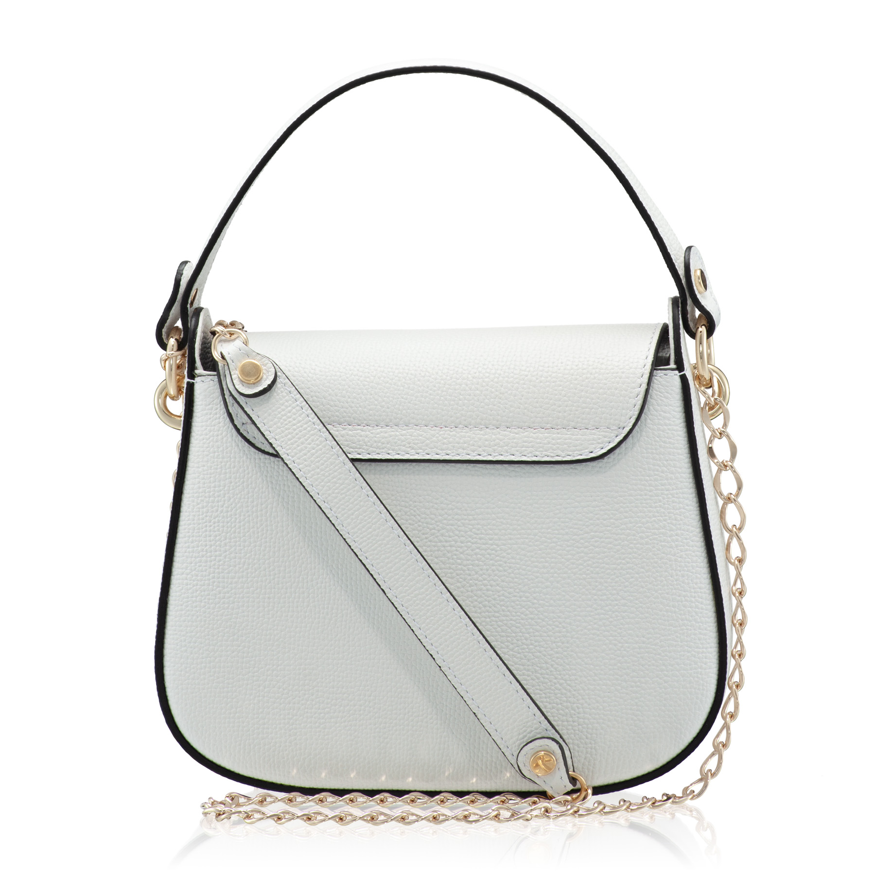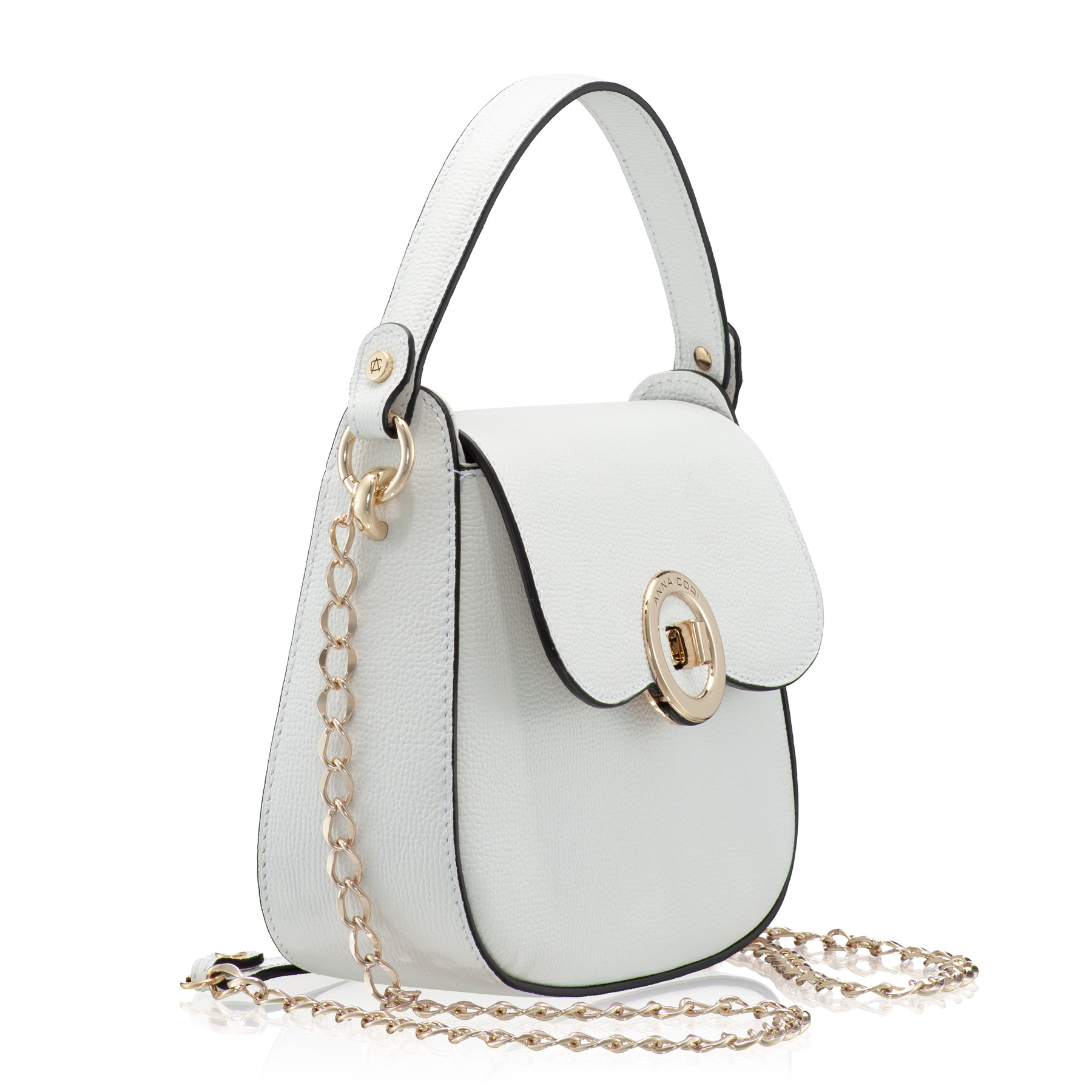 Geanta dama de mana din piele naturala ENA 01 Vit Stamp Alb – un model atemporal ideal pentru tinute elegante sau office.