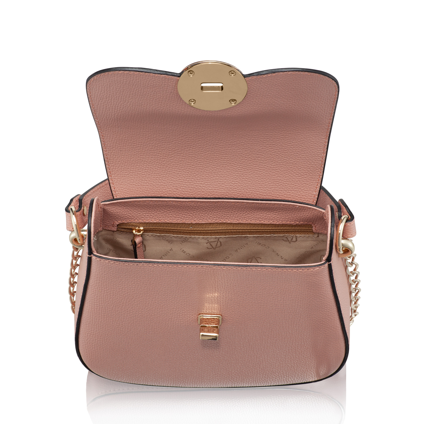 Designul sau minimalist este pus in valoare de finisajele premium inspirate de rafinamentul italian. Culoarea roz pudrat este usor de asortat cu piese vestimentare feminine. Interiorul este bine compartimentat, ideal pentru organizarea esentialelor de zi cu zi, fara a compromite stilul.