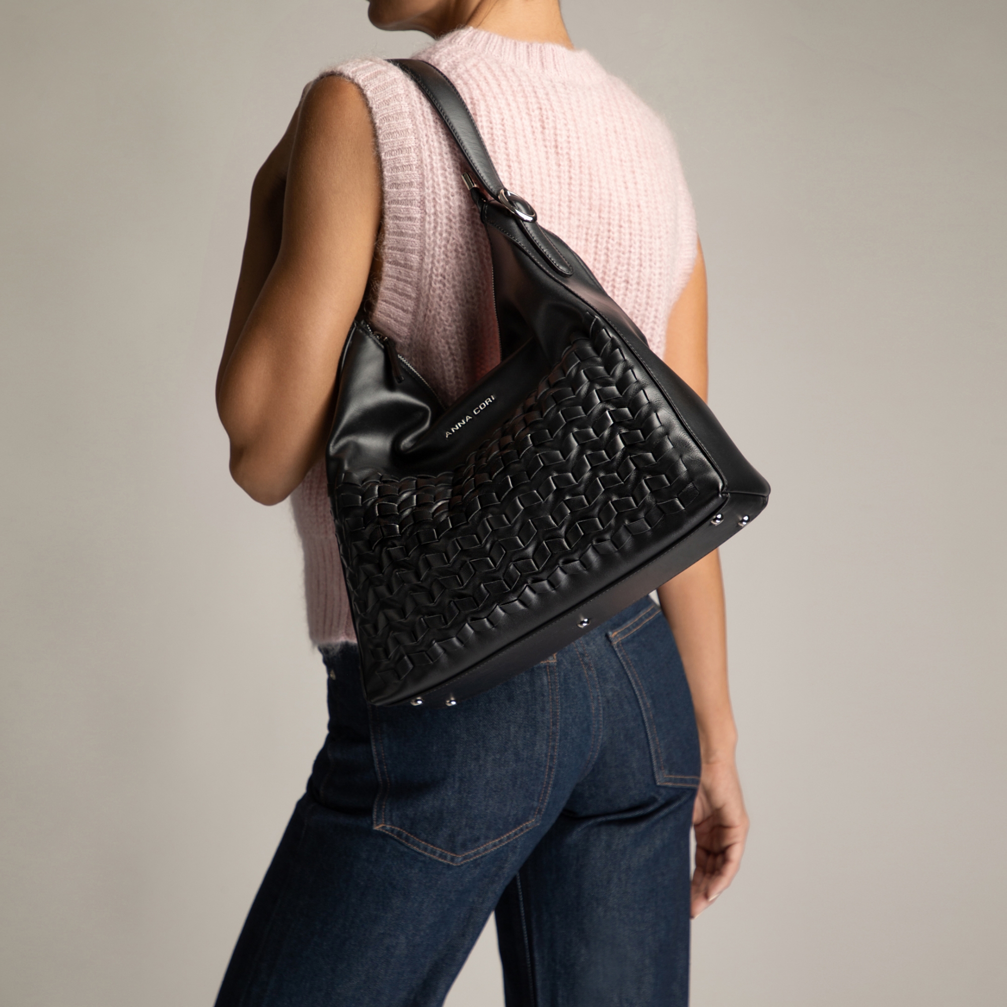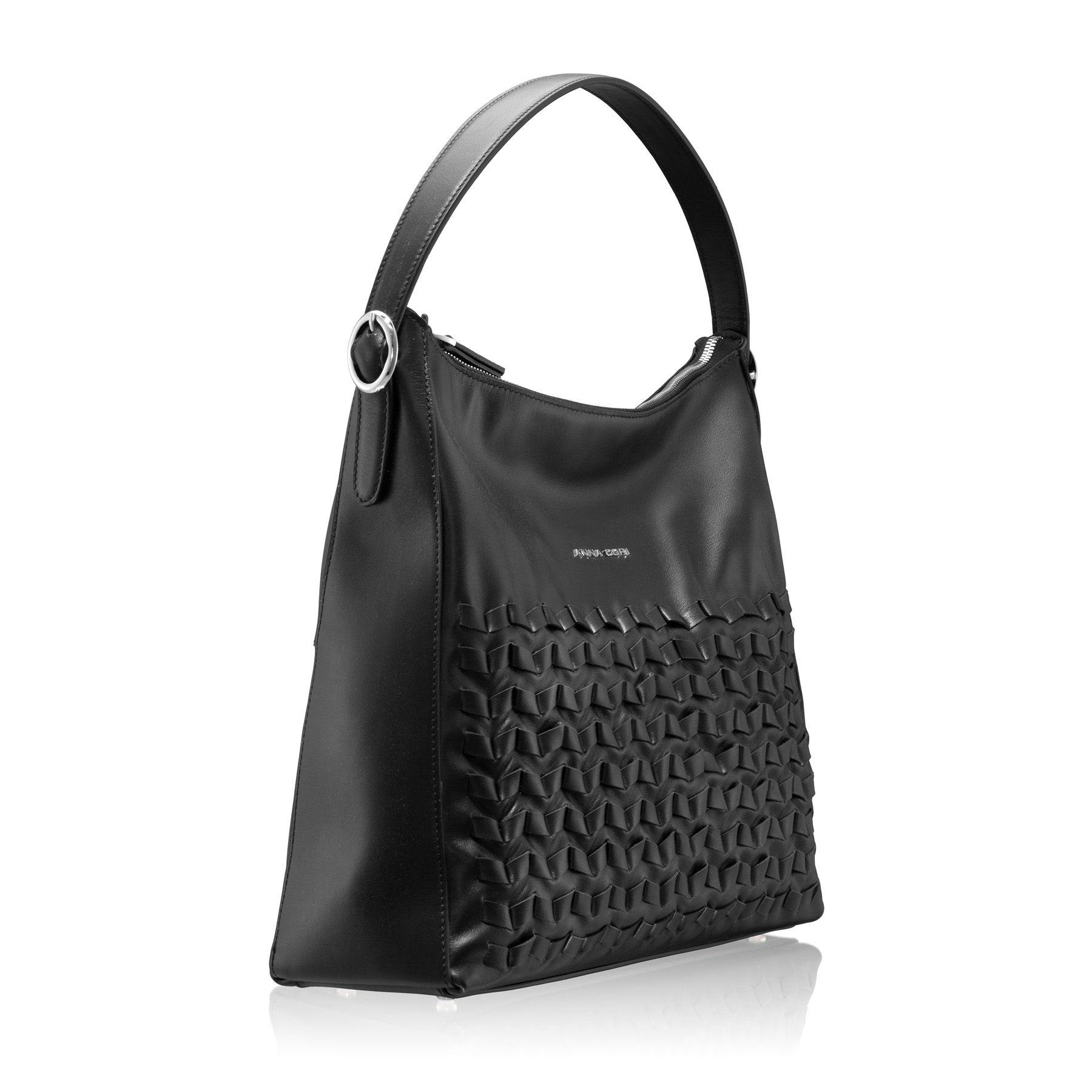 Geanta de umar din piele naturala, cu detaliu din piele impletita.