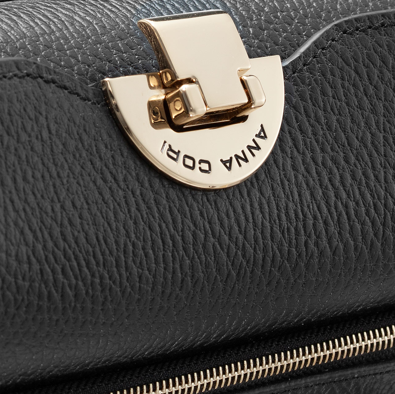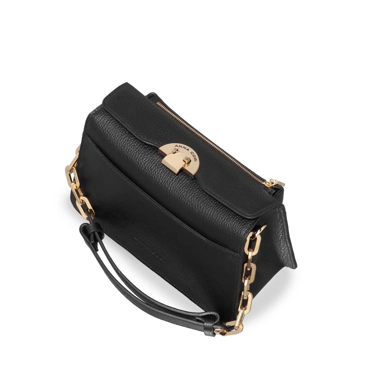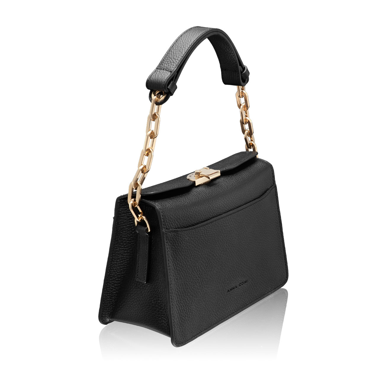 Geanta de umăr, Felicia, reinterpretează desingul contemporan cu cel clasic. O geantă compactă, dar în același timp încăpătoare, care subliniază eleganța. Detaliul special al acestui model este exprimat prin închiderea cu accesoriu metalic deasupra genții. Mânerul din piele este ușor reglabil și accesorizat cu un lanț metalic.