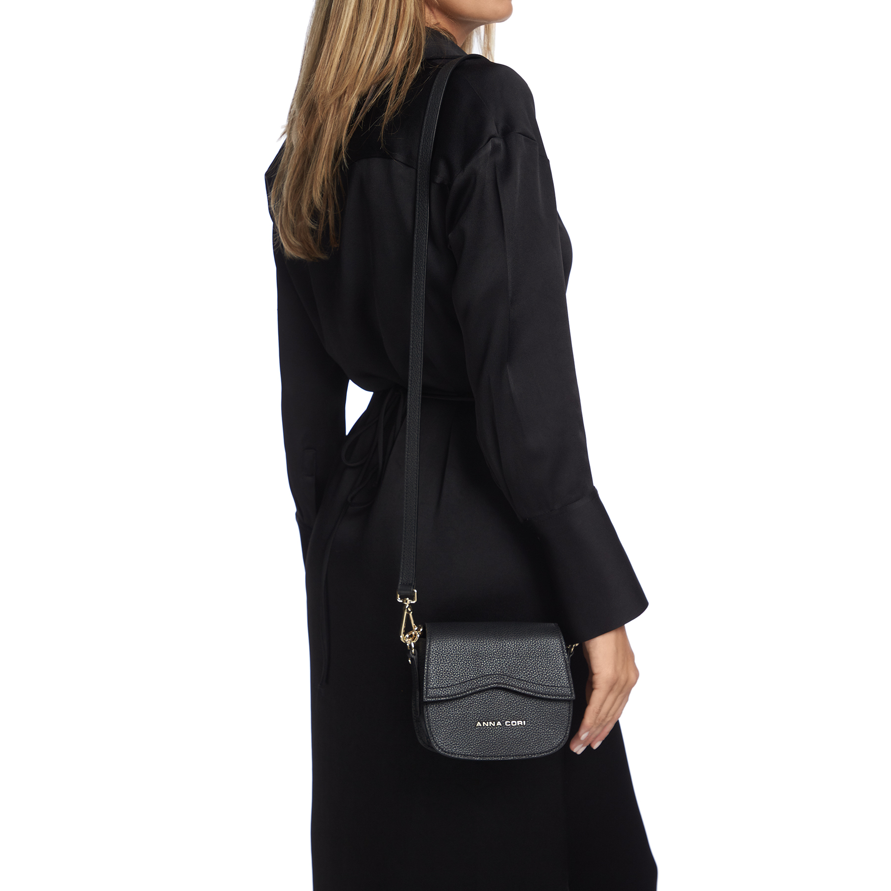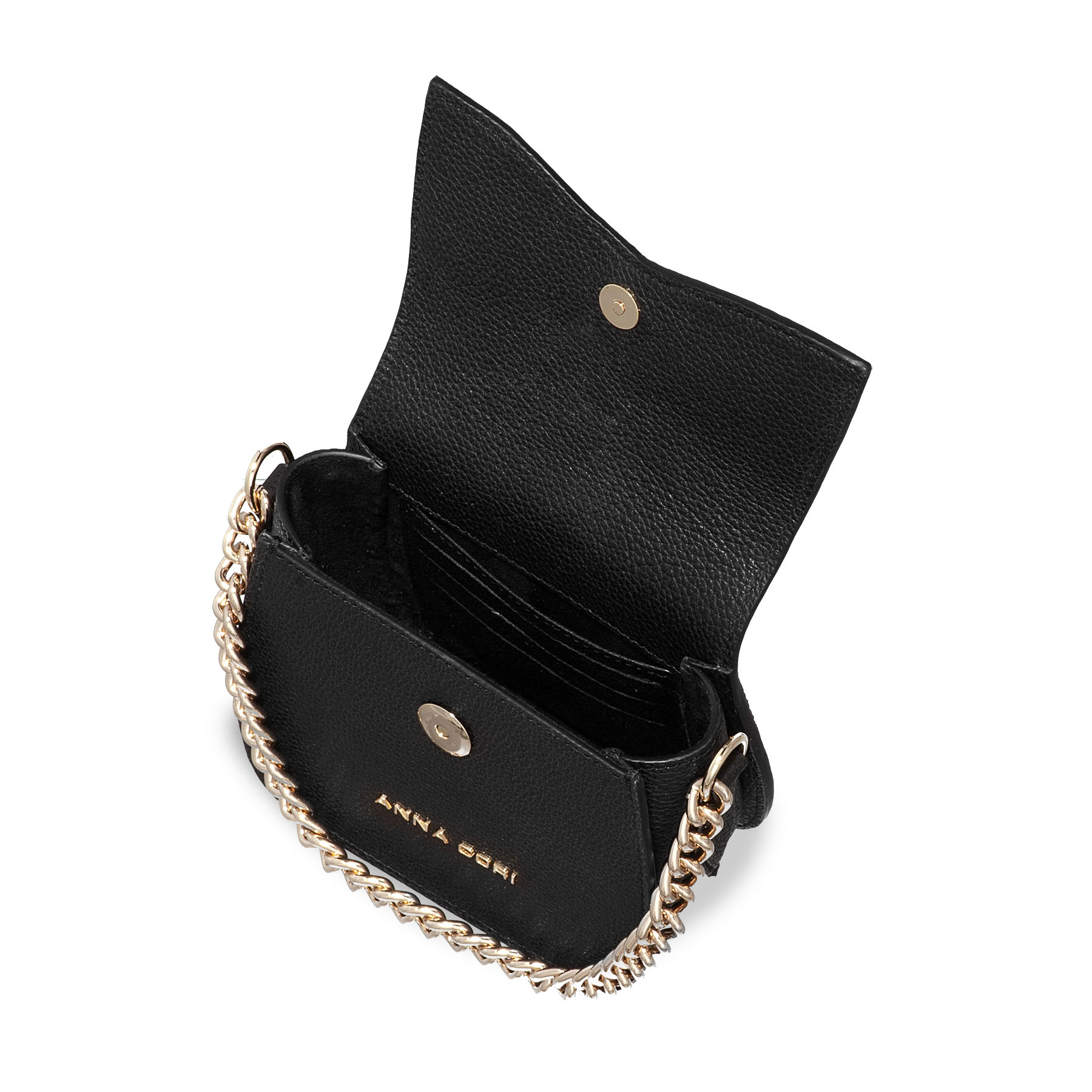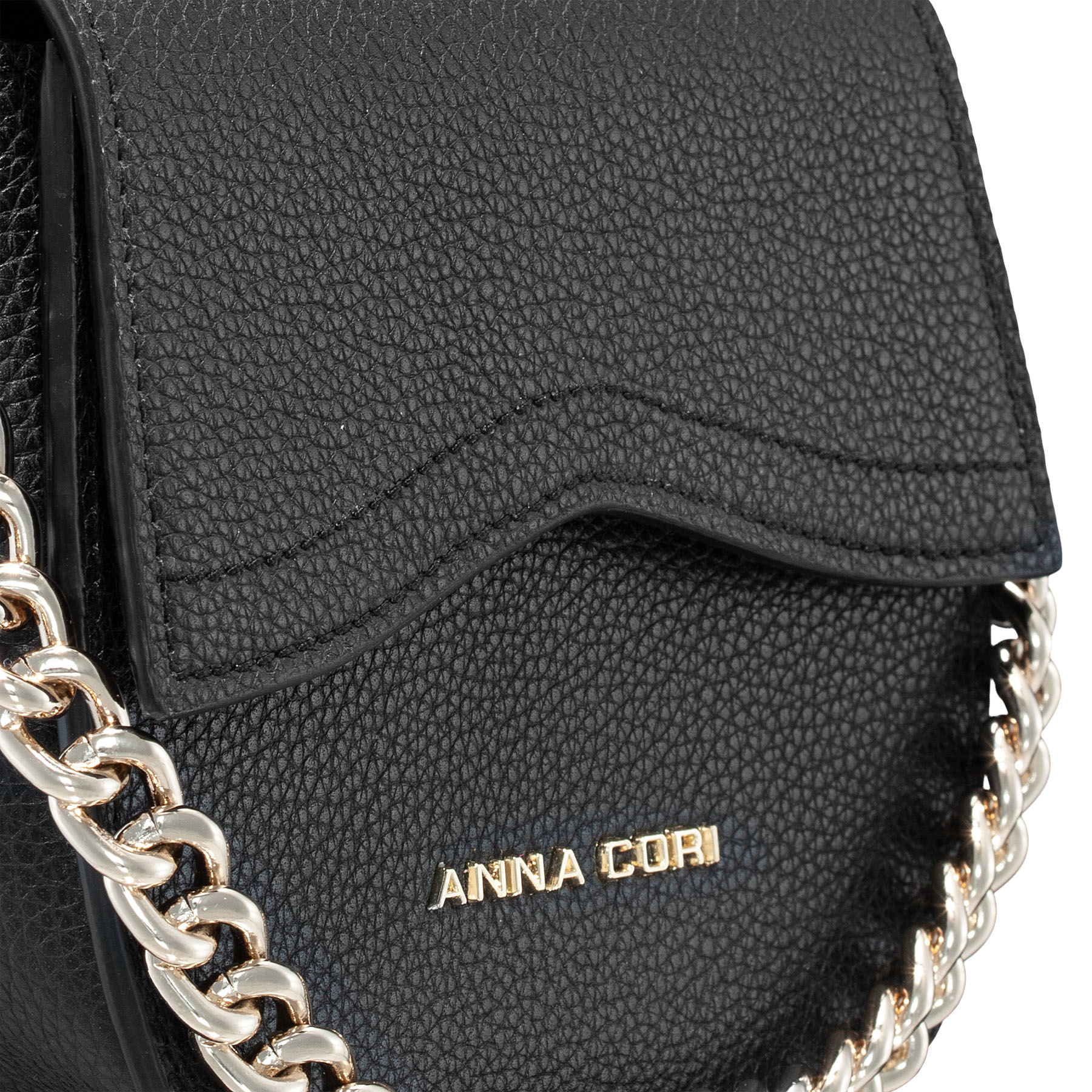 Mini geanta #NEVADA este realizată din piele naturală de vițel, cu o textură fină și accesorizată cu logo-ul Anna Cori. Este prevăzută cu lanț metalic auriu și o curea din piele naturală pentru a fi purtată crossbody.