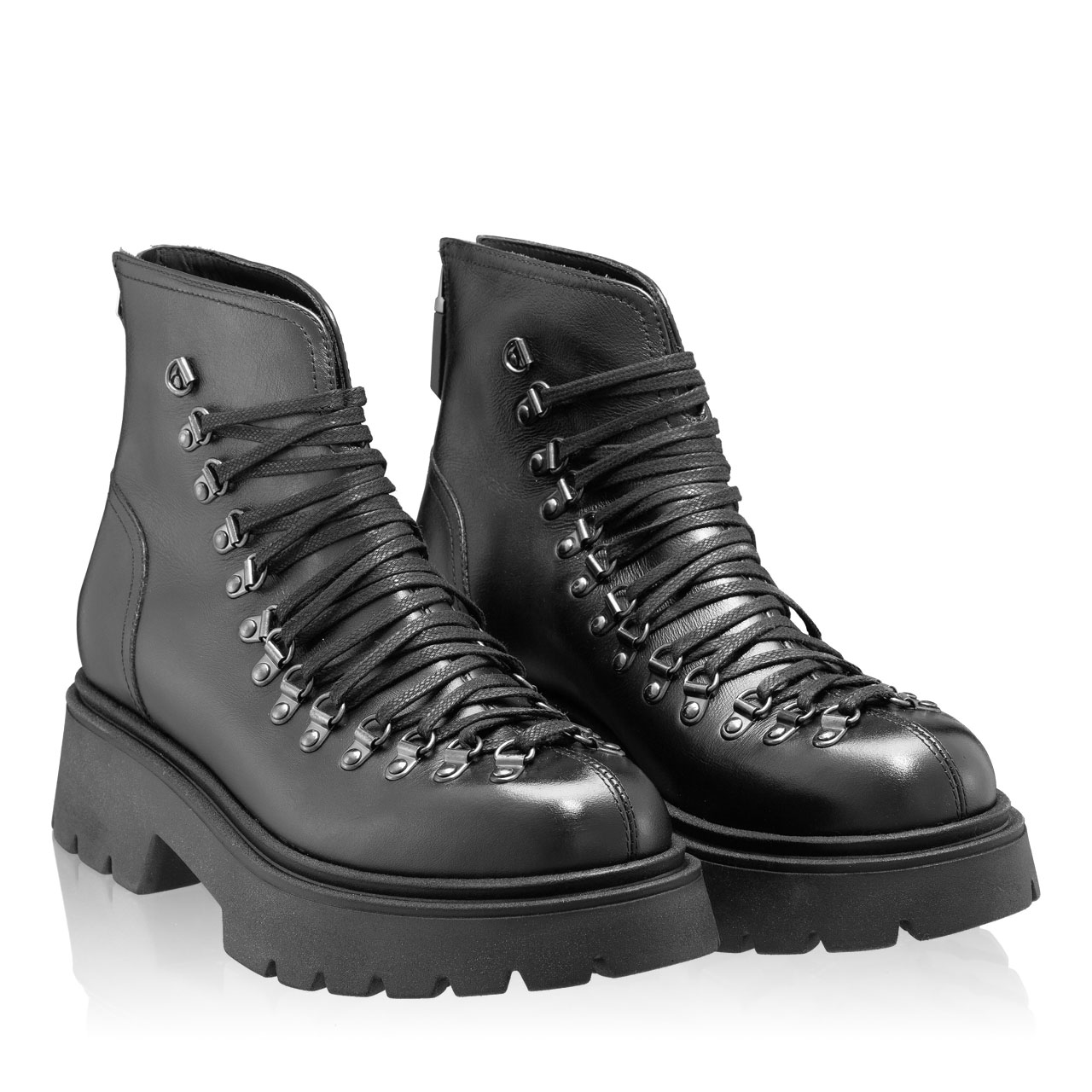Ghete dama din piele naturala, accesorizate cu monograma Anna Cori. Inchiderea se face cu fermoar si siret, iar inaltimea talpii este de 20mm. In interior sunt captusite cu piele naturala.