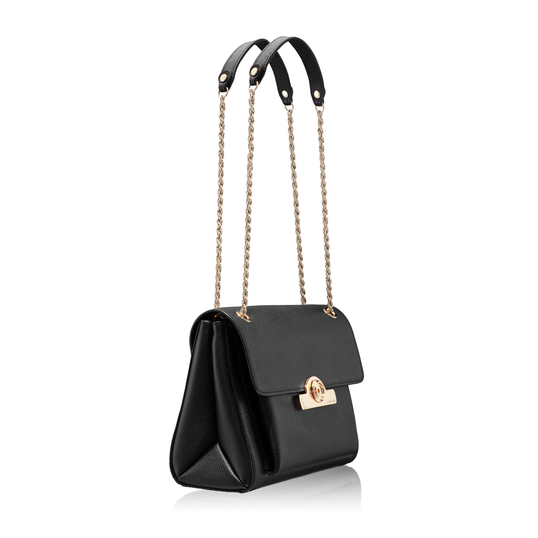 Geanta dama de umar din piele naturala cu accesorii personalizate.La interior, este prevazuta cu doua compartimente si un buzunar cu fermoar.Bareta de umar este reglabila.
