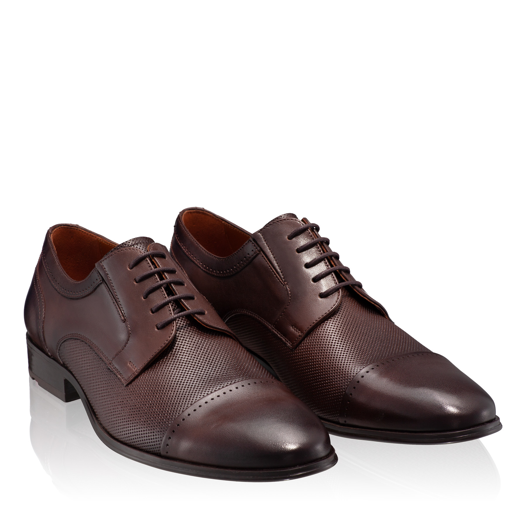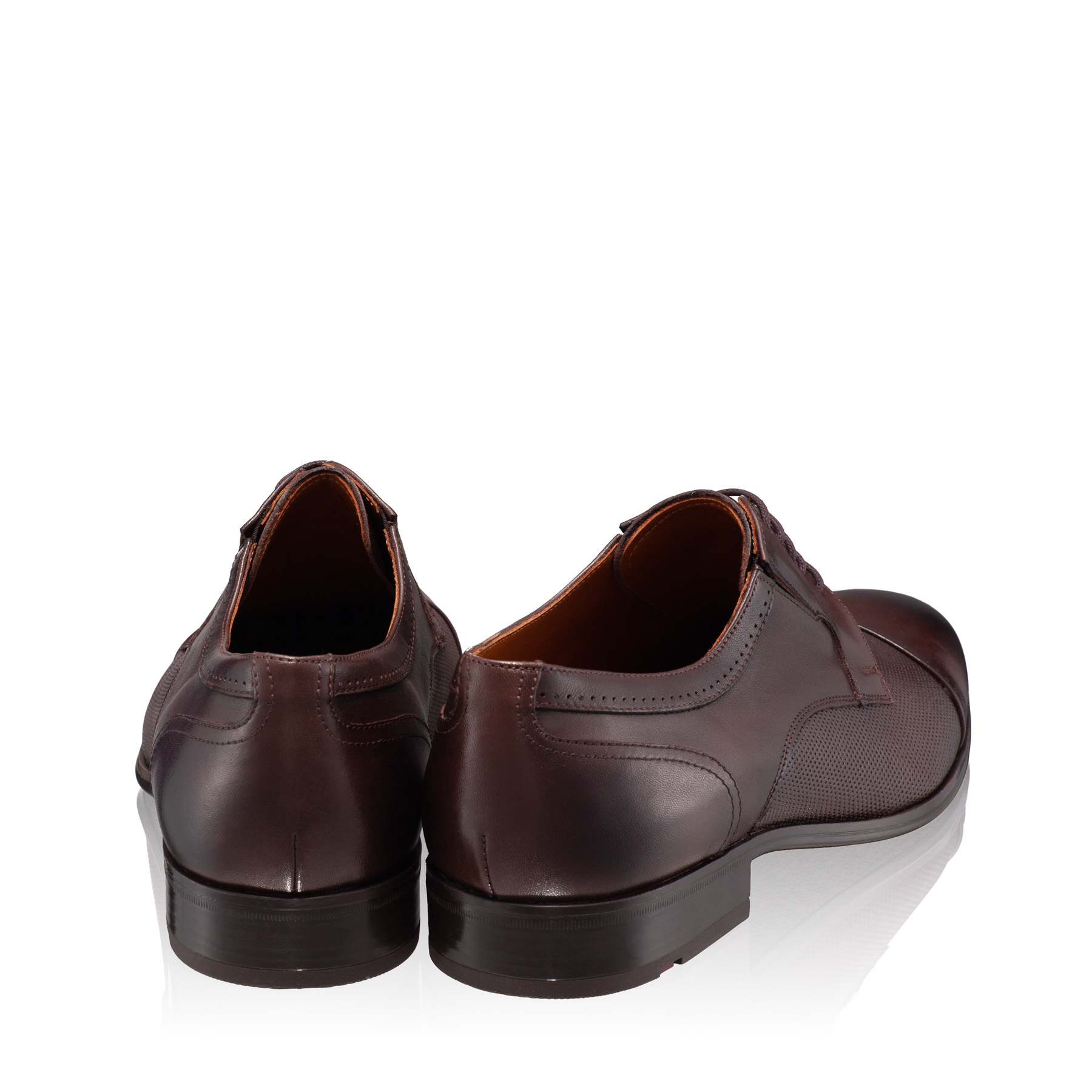 Pantofi eleganti barbati din piele naturala forata, finisati manual.Inchiderea se face cu siret si sunt capstusiti cu piele naturala.