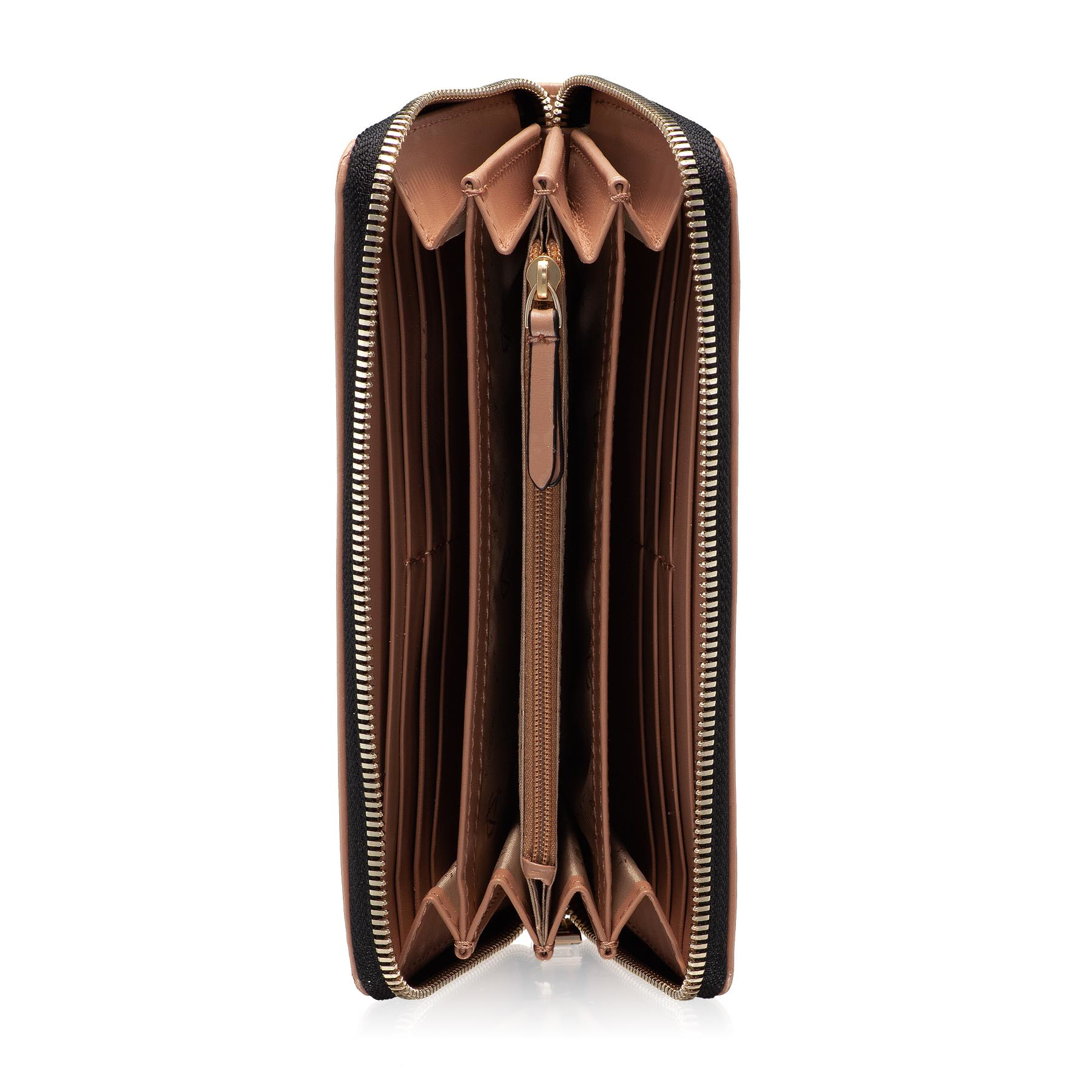 Este prevazut cu 4 compartimente, un buzunar cu fermoar pentru monede si 8 spatii pentru depozitare carduri.