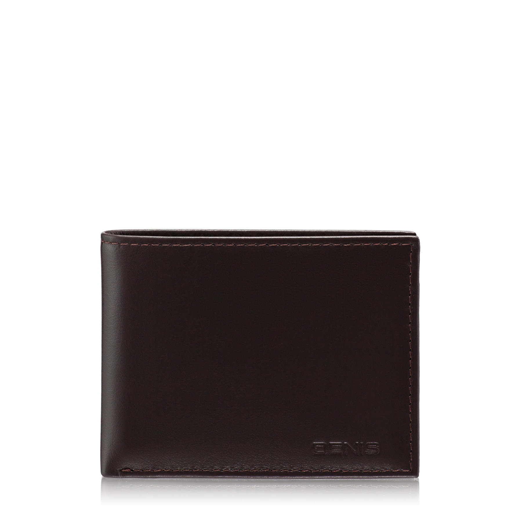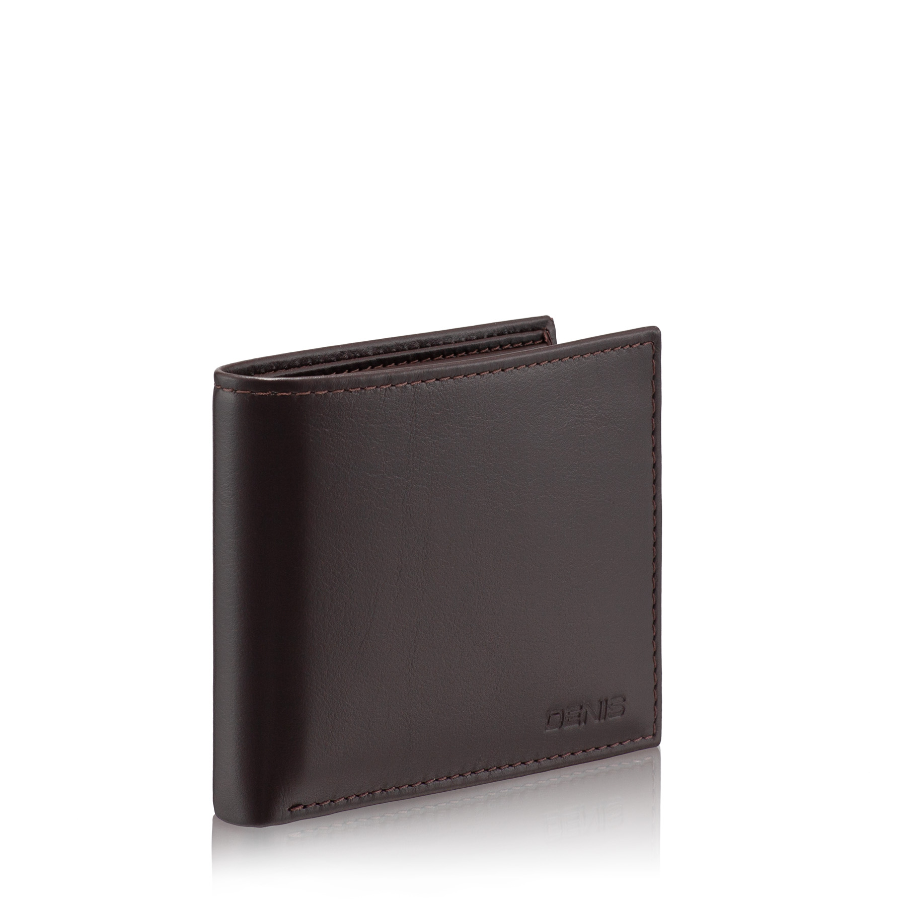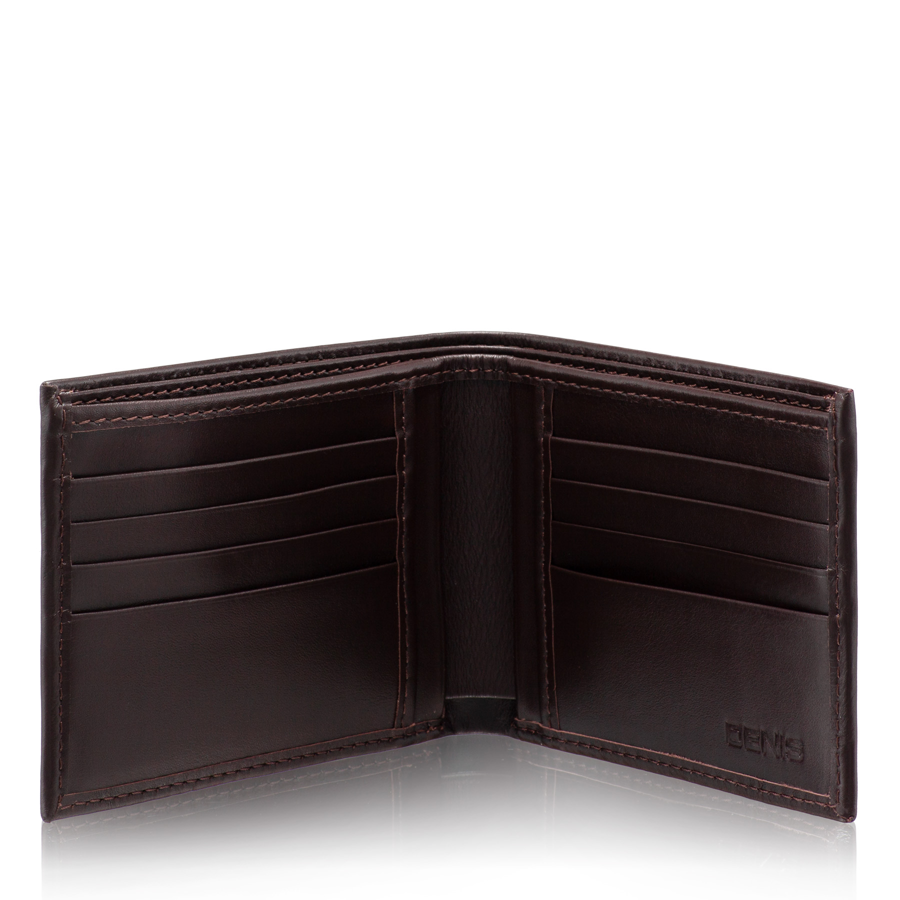 Portofel barbati din piele naturala, personalizat cu logo-ul DENIS. Este prevazut cu un compartiment principal si 8 spatii pentru depozitare carduri.