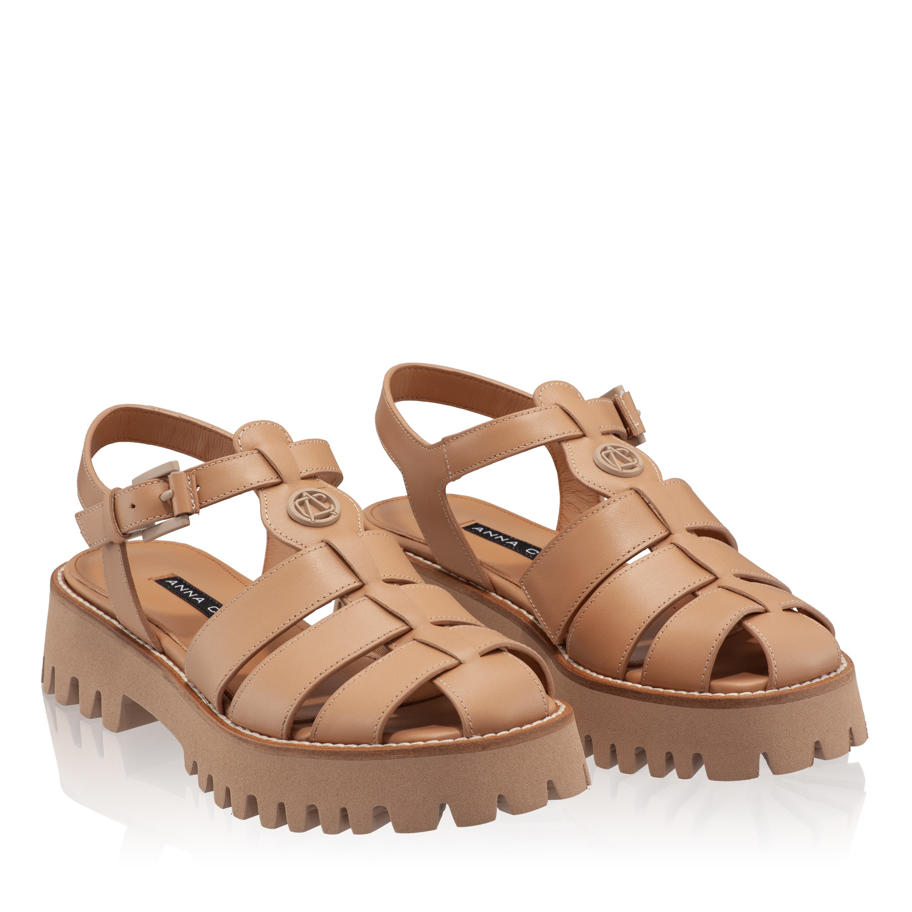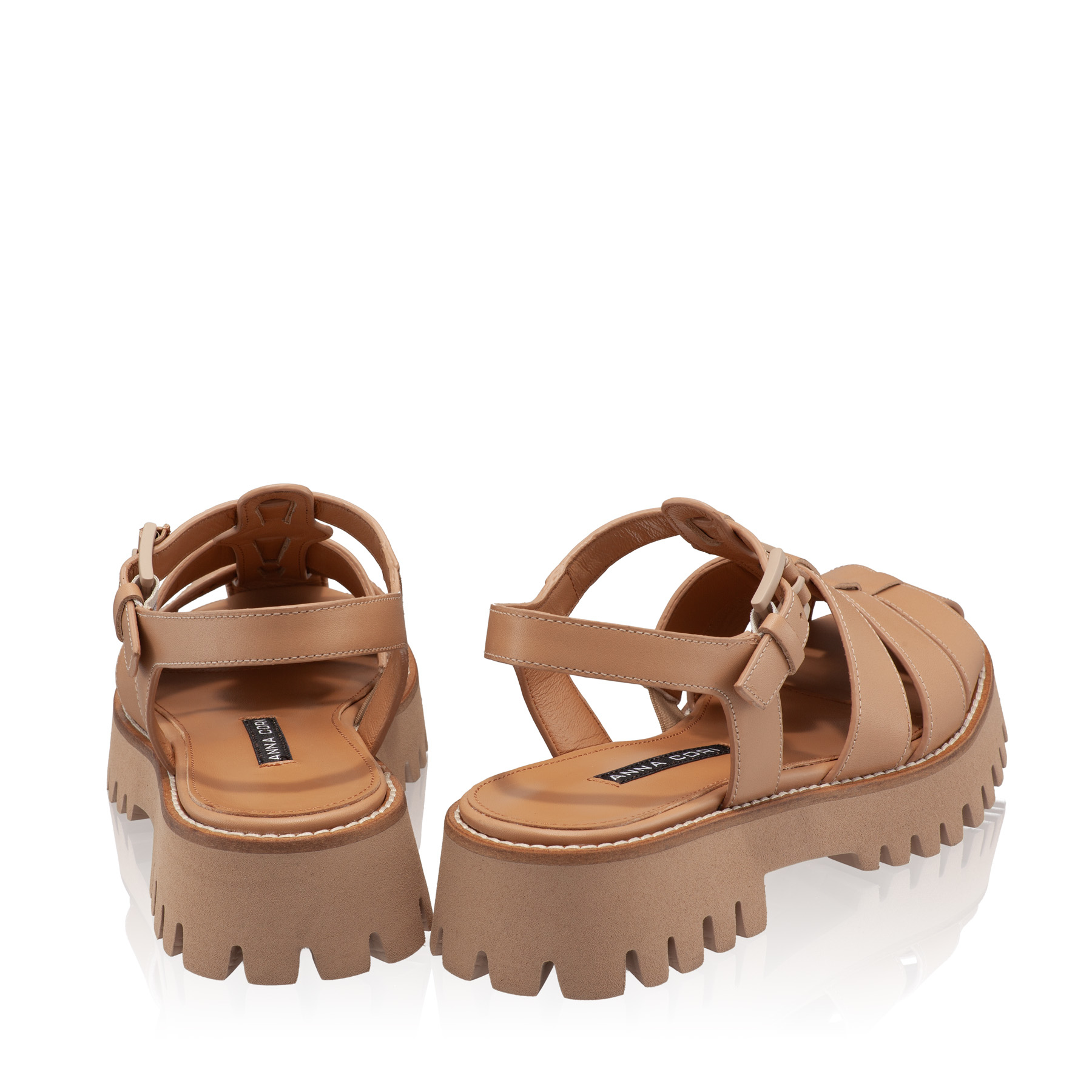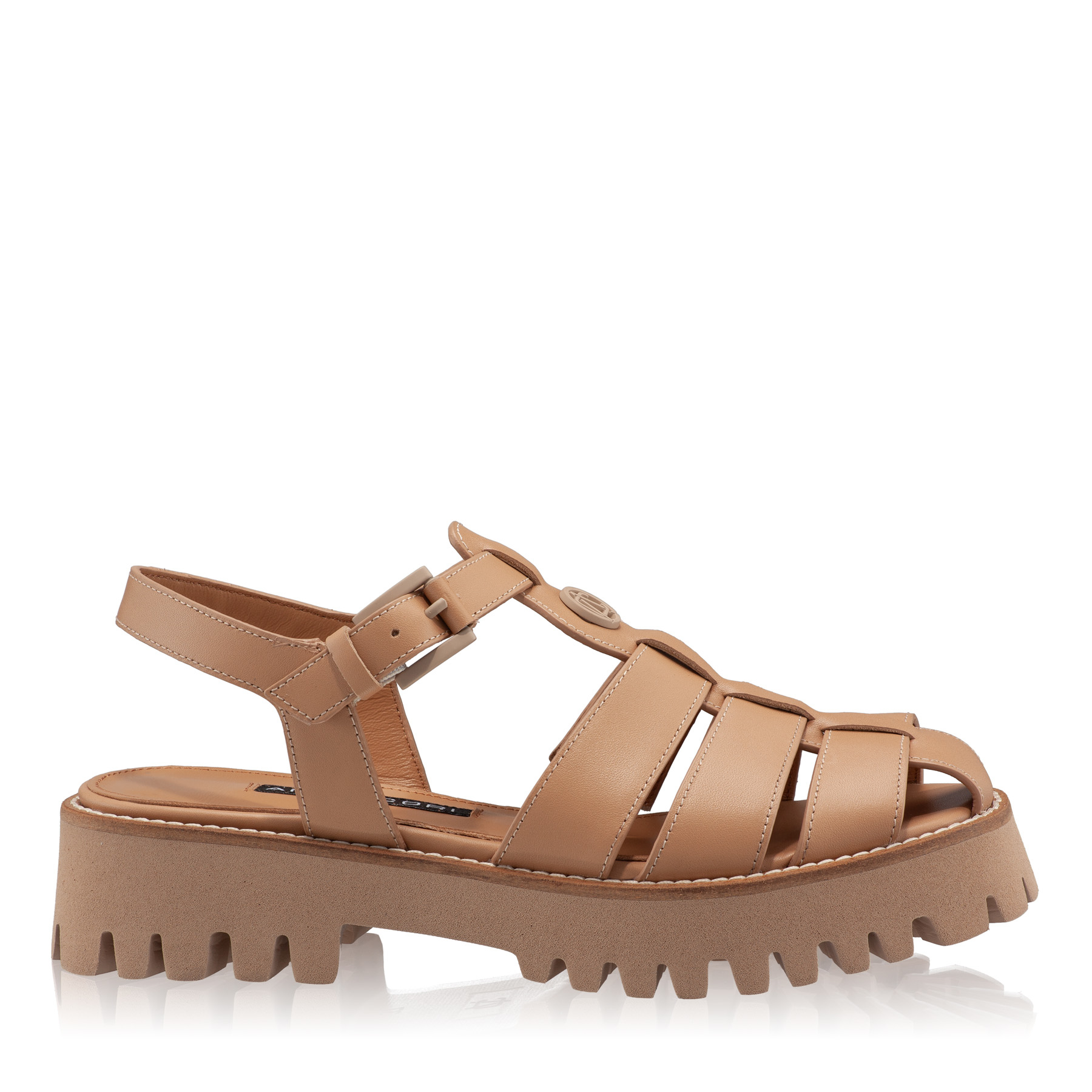 Sandale dama din piele naturala, cu barete.Inchiderea se face cu cataramă metalică. Sunt captusite cu piele naturala. Inaltimea talpii este de 30mm.