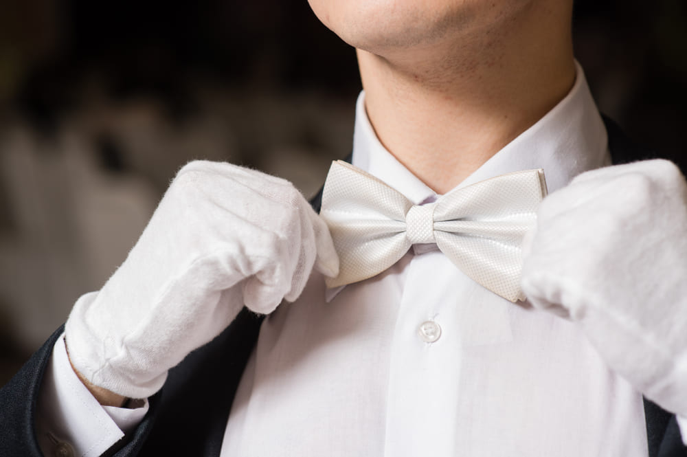 - Mănușile de mătase sunt perfect compatibile cu o ținută white tie. Nu le evita, deși sunt opționale.
